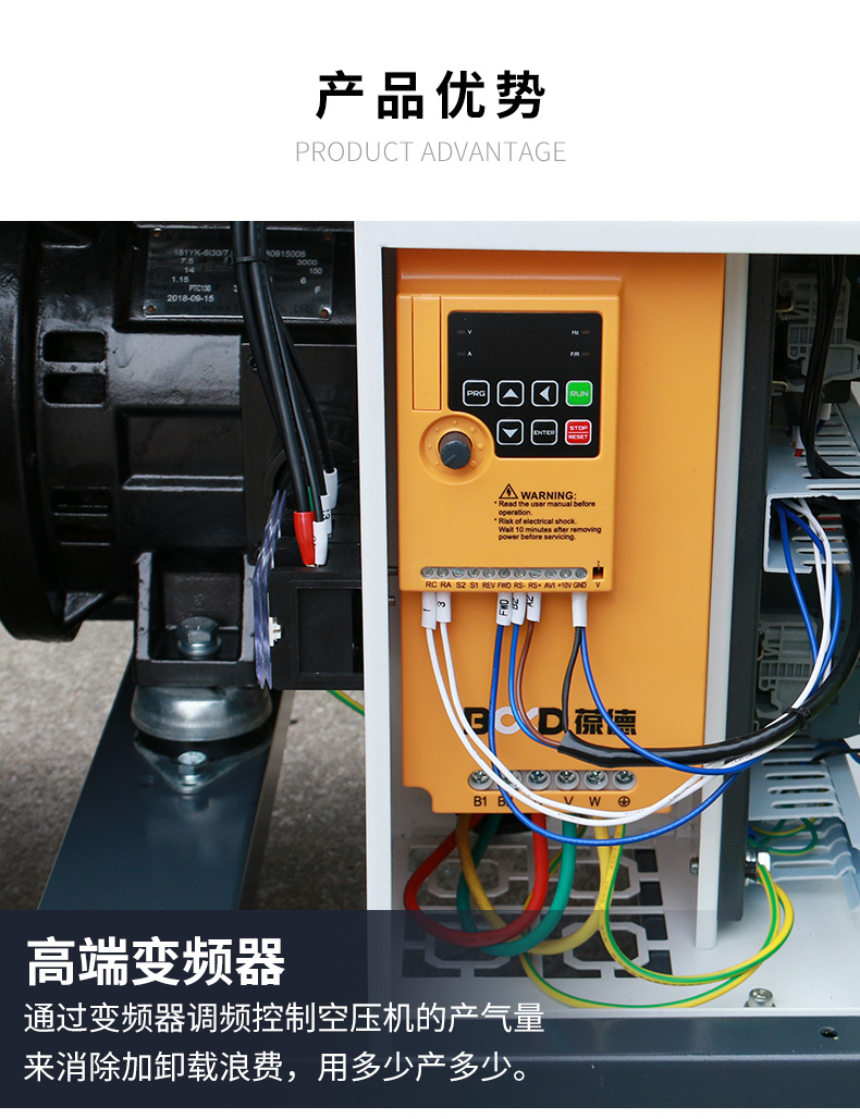 大黃蜂永磁變頻空壓機特點:永磁同步電機采用釹鐵硼永磁體,葆德一體式主機,新一代型線設計,低噪音,低維護費用,可靠,穩定,型號:DHF-10PM、DHF-15PM、DHF-20PM、DHF-30PM